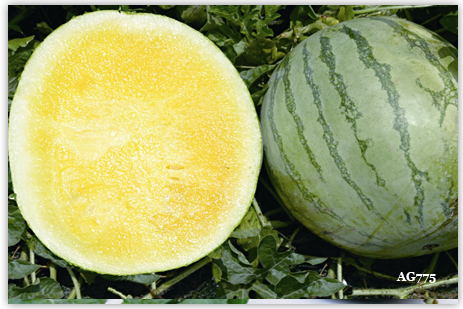 Seedless watermelon, fruit is globe, weights about 6-10kg.