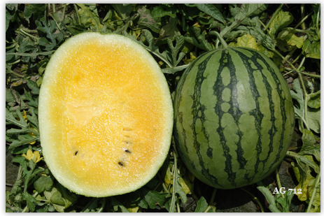 綠底薄皮帶條斑,黃色果肉,肉質極佳,甜度高